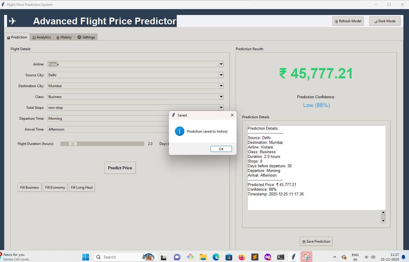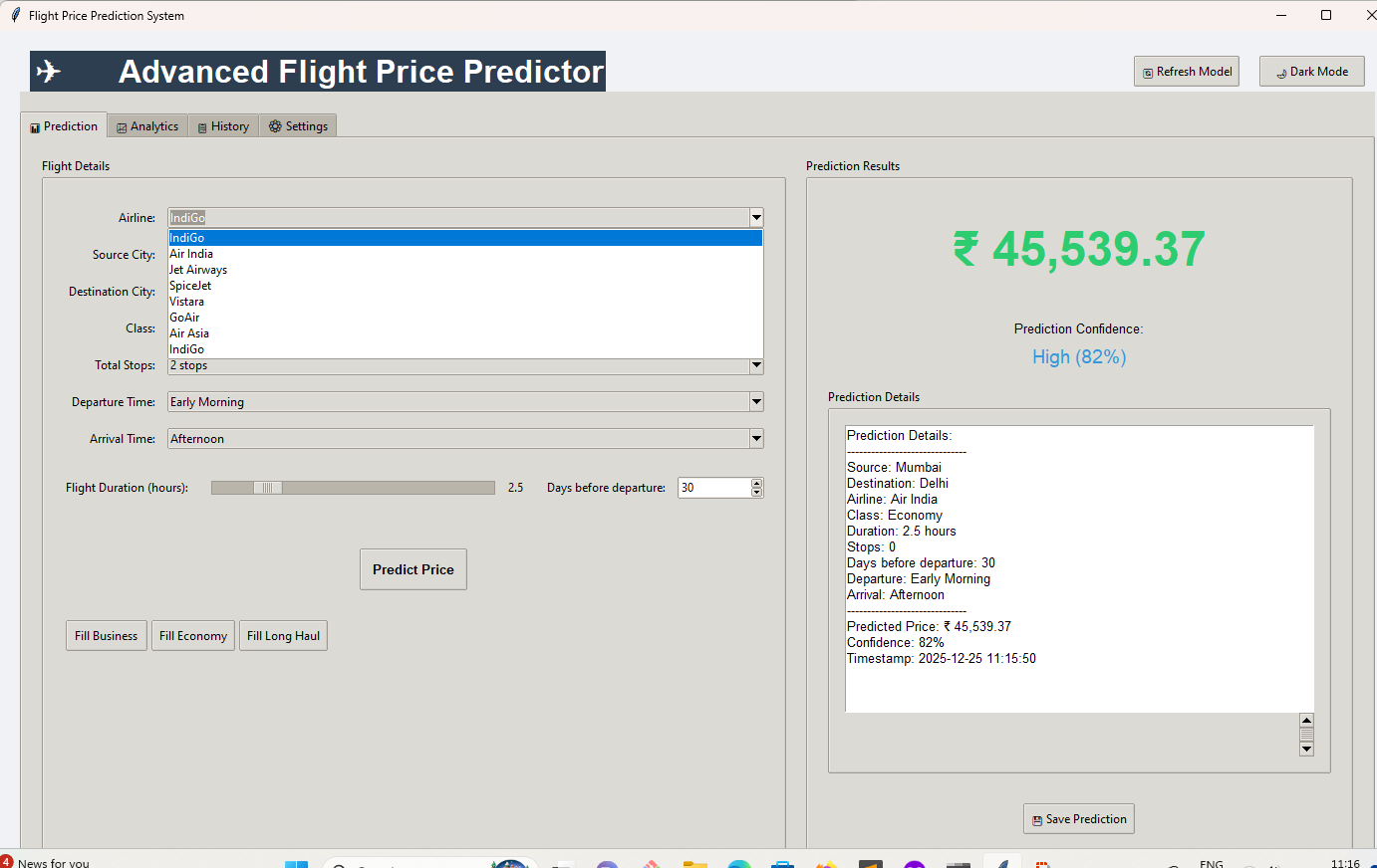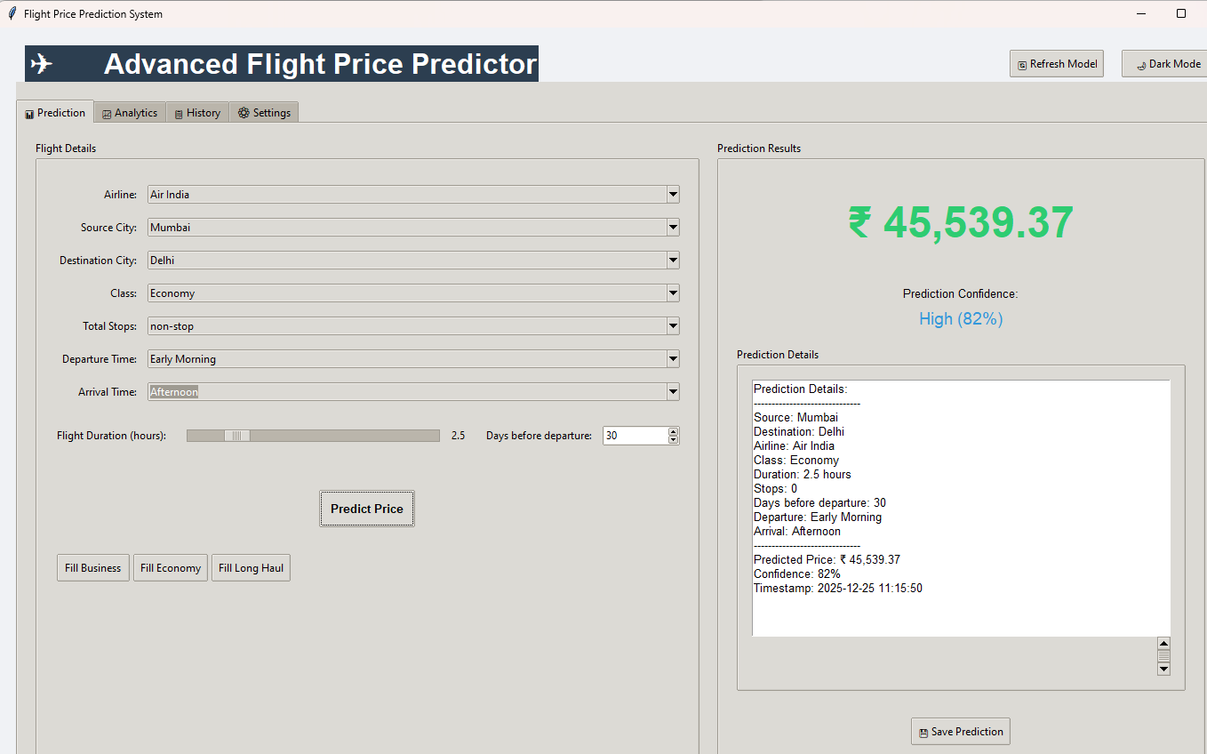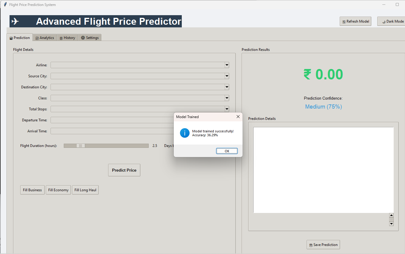 Advanced Flight Price Prediction GUI with Python Tkinter