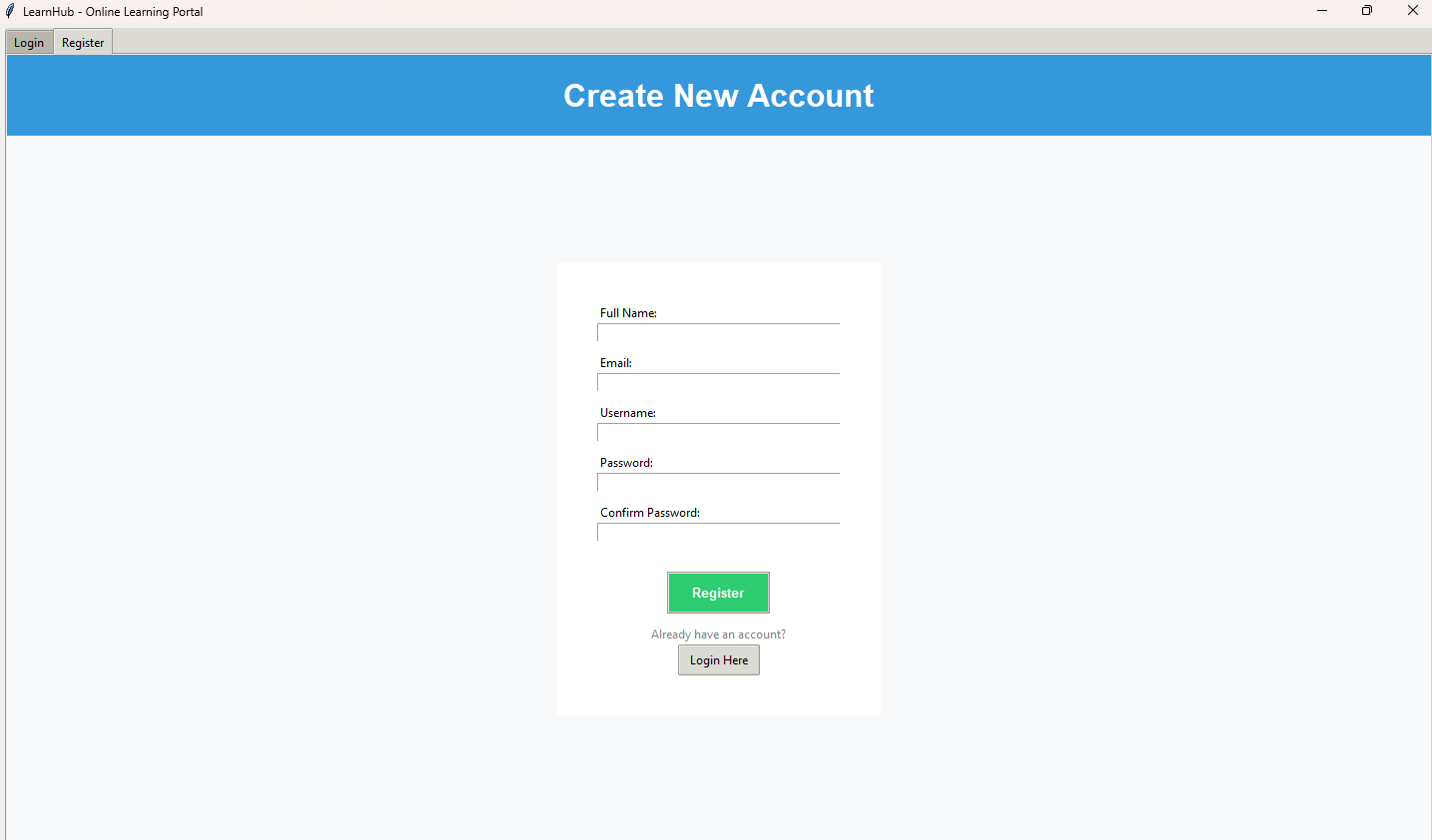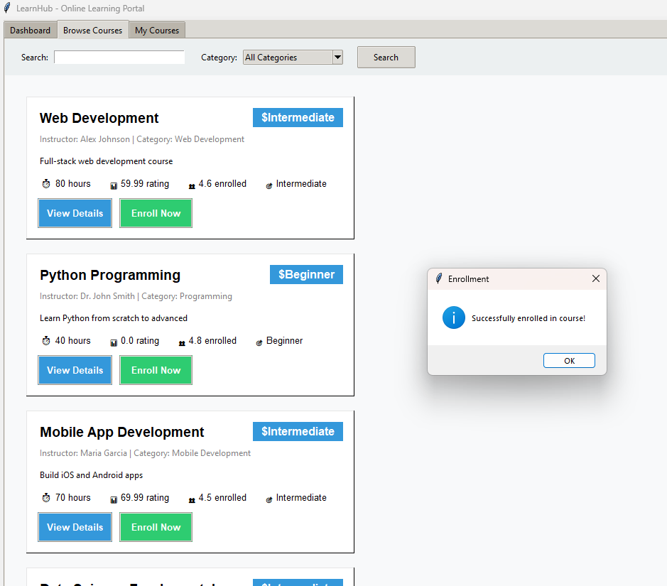 Advanced Online Learning Portal GUI