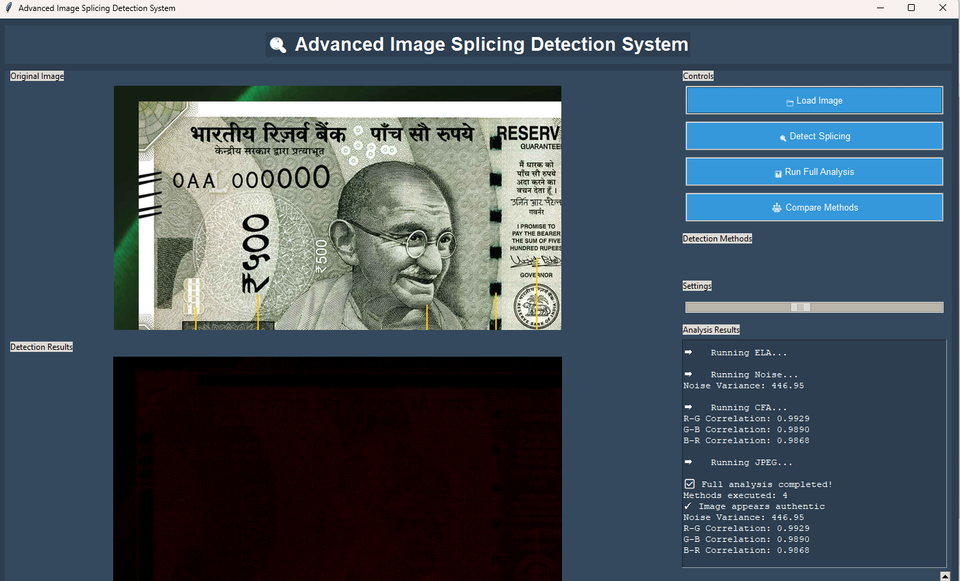Advanced Image Splicing Detection GUI